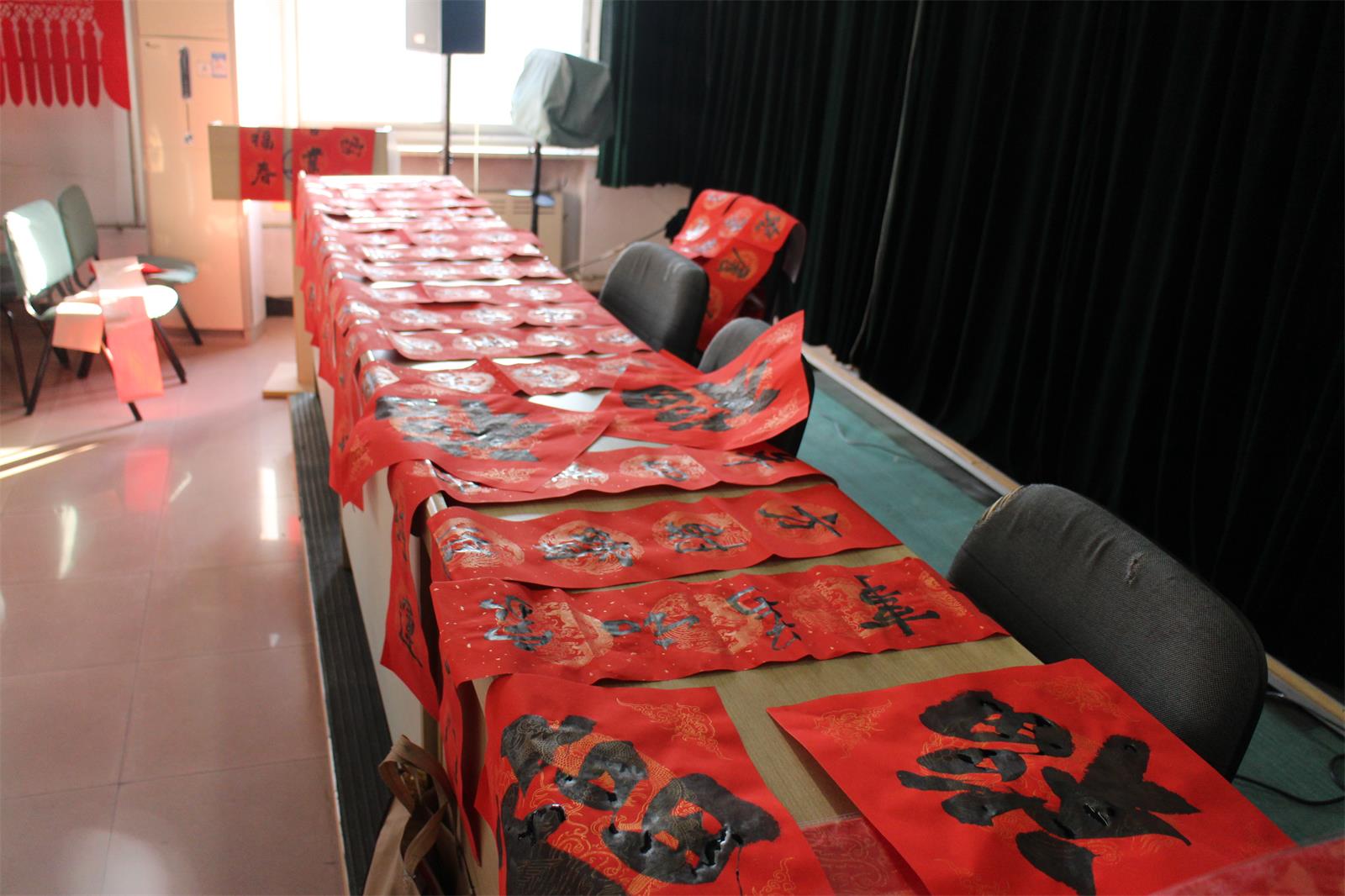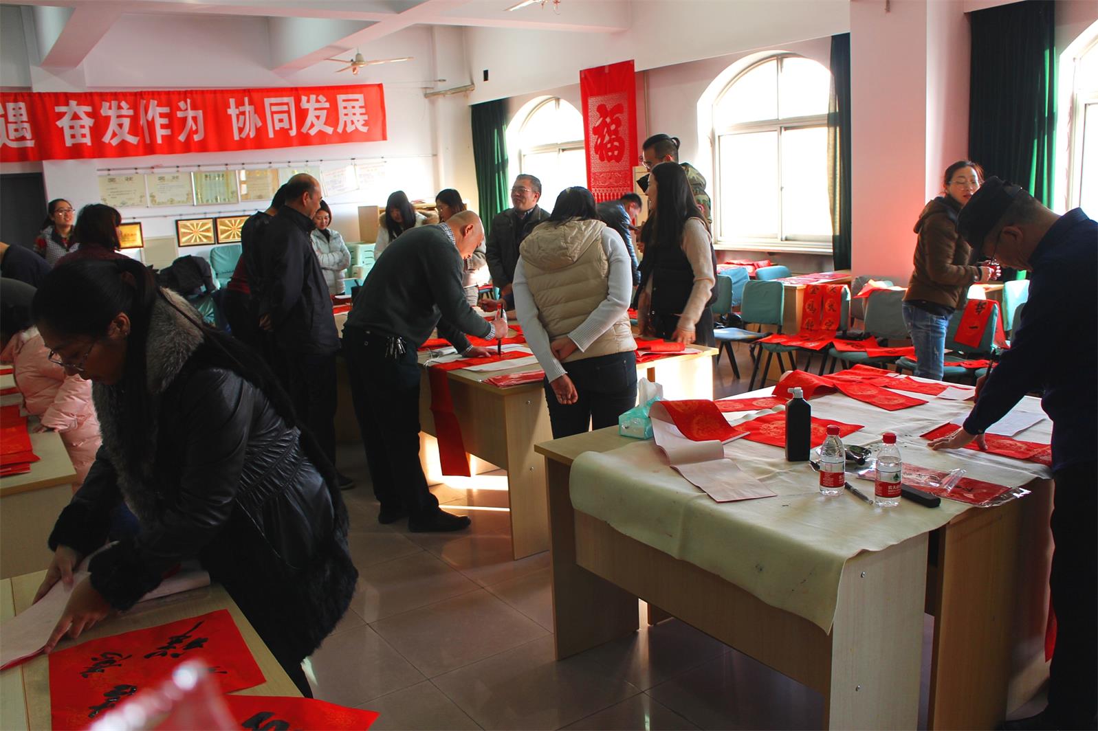 今年當(dāng)然也不能例外!2月2 日下午15 點(diǎn)至 17 點(diǎn)30分,市書法家協(xié)會(huì)的多位優(yōu)秀書法家準(zhǔn)時(shí)來(lái)到五樓會(huì)議室為本院職工們免費(fèi)書寫春聯(lián),大伙兒熱情很高, 現(xiàn)場(chǎng)氣氛歡快,不一會(huì)兒各色字體,不同內(nèi)容的大紅春聯(lián)就鋪滿了各個(gè)角落。